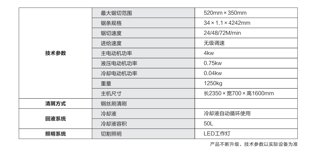 ● 520mmx350mm锯切范围