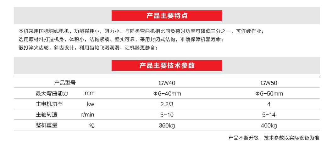 本机采用国标铜线电机,功能损耗小,阻力小,与同类弯曲机相比同负荷时功率可降低三分之一,可连续作业;选用原材料打造机身,体积小,结构紧凑、坚实可靠,采用封闭式结构,准确保障机器寿命;锻打淬火齿轮,斜齿设计,利用齿轮飞溅润滑,让机器更静音;